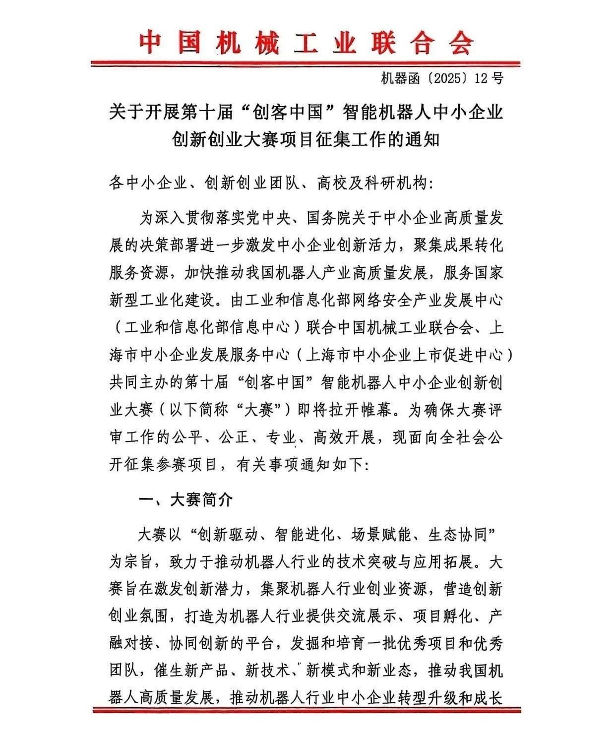 关于开展第十届“创客中国”智能机器人中小企业创新创业大赛项目征集工作的通知.pdf